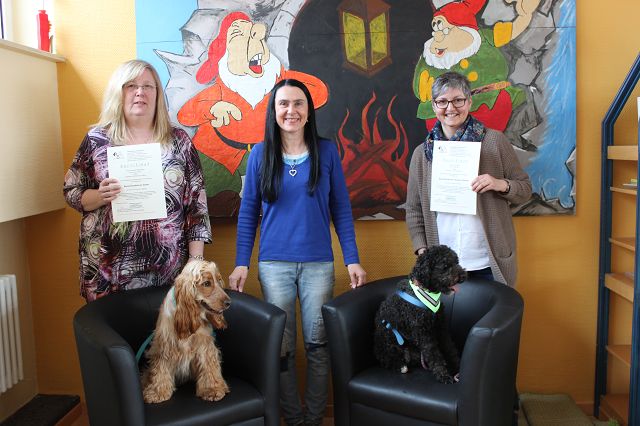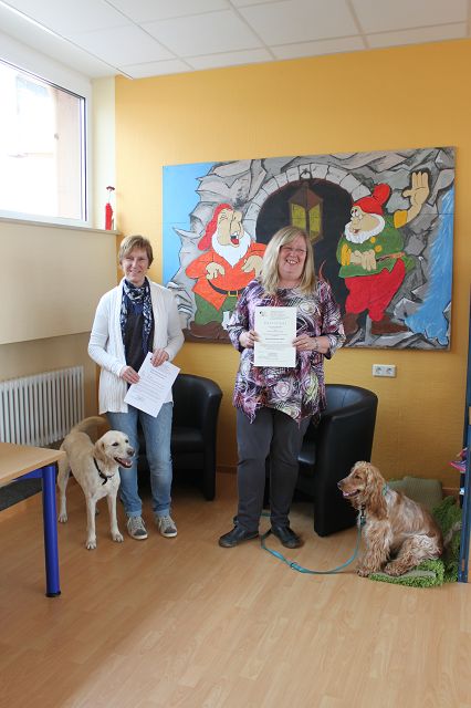 Frau Barbara Hohmann mit Luna, Besuchshündin Kinder/KiTa (links)