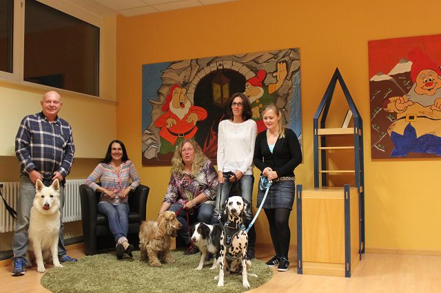 Frau Annette Berrahma mit Emil,Besuchshund Kinder/KiTa (rechts)